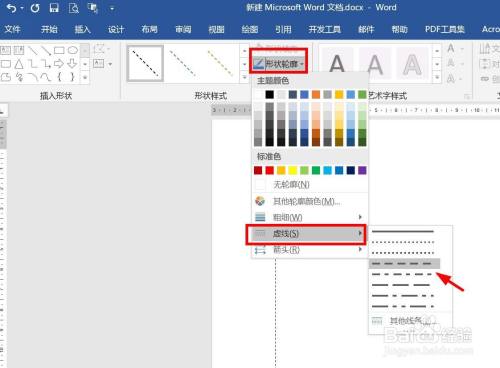 若不对劲预设样式。可以更改虚线样式。点击“外形轮廓”——“虚线”,选择喜好的虚线样式。