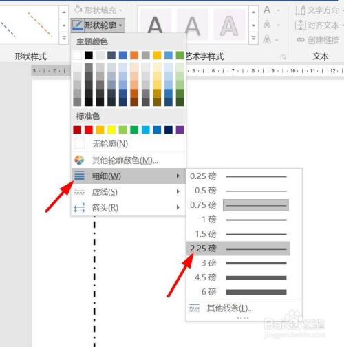 在文档中画出直线。选中直线,然后点击“格局”,点击外形样式下拉箭头。