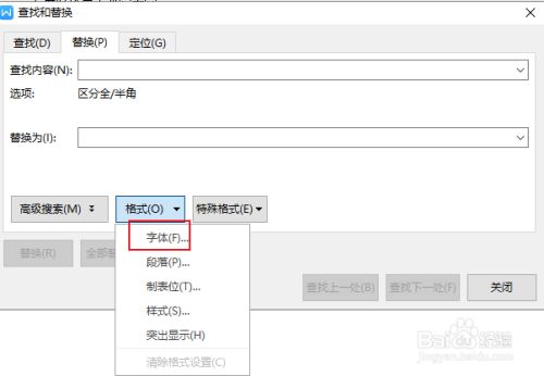 在word文档带有颜色字内容,按下ctrl+H调出替代功能。