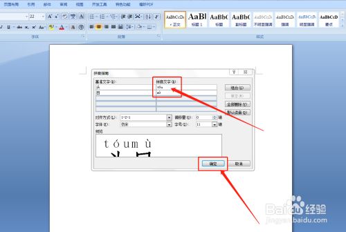 第四,在“拼音指南”里面的“拼音文字”里面输入“tóu mù”,并点击确定;