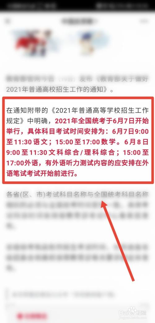 最后在资讯页面,即可看到2021年高考的具体时候放置了,如下图所示。