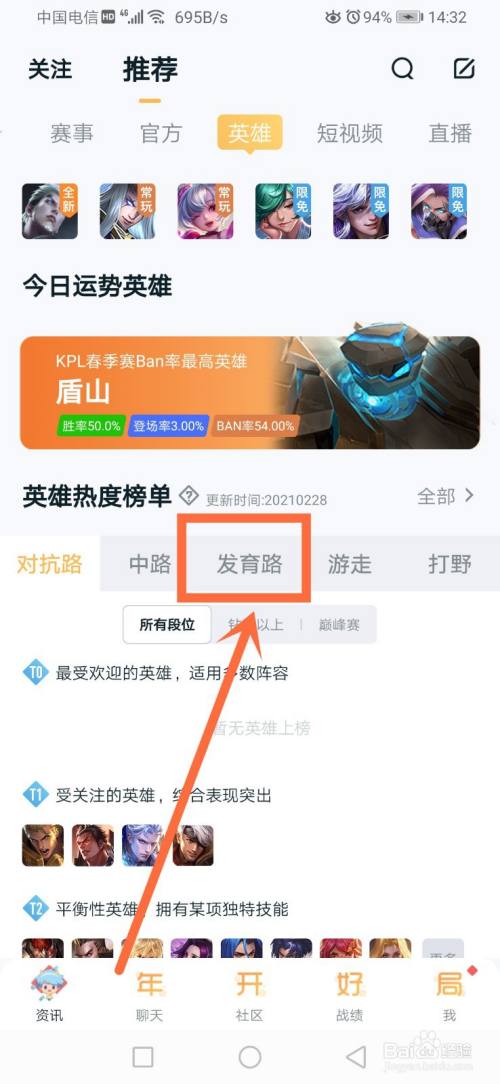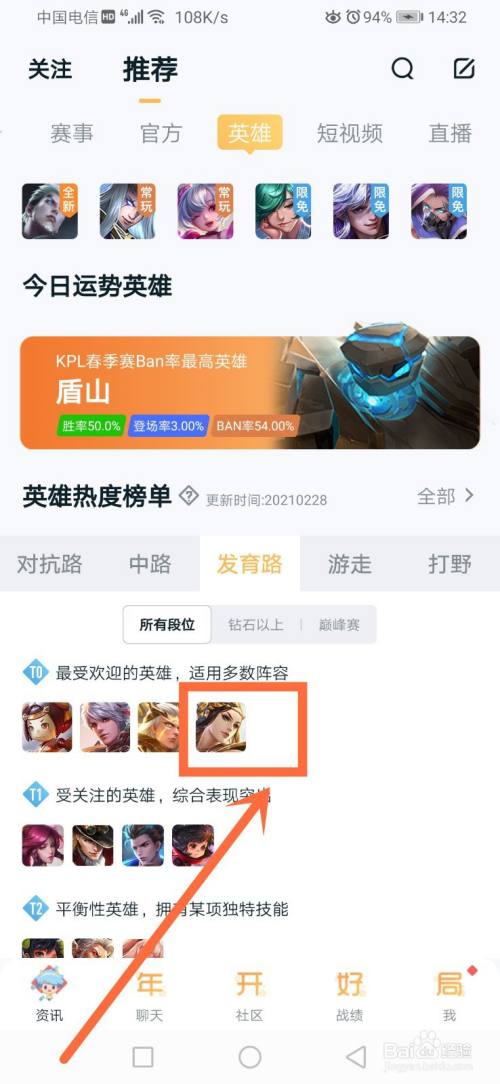 进入界面后,点击上方的【英雄】进入。如下图所示