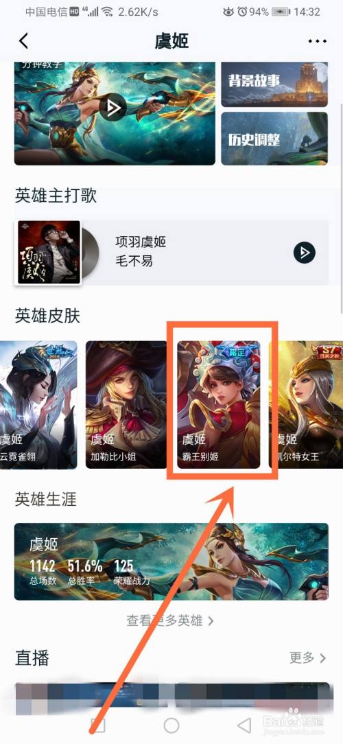 之后,找到【英雄皮肤】下方的【霸王别姬】皮肤点击进入。如下图所示