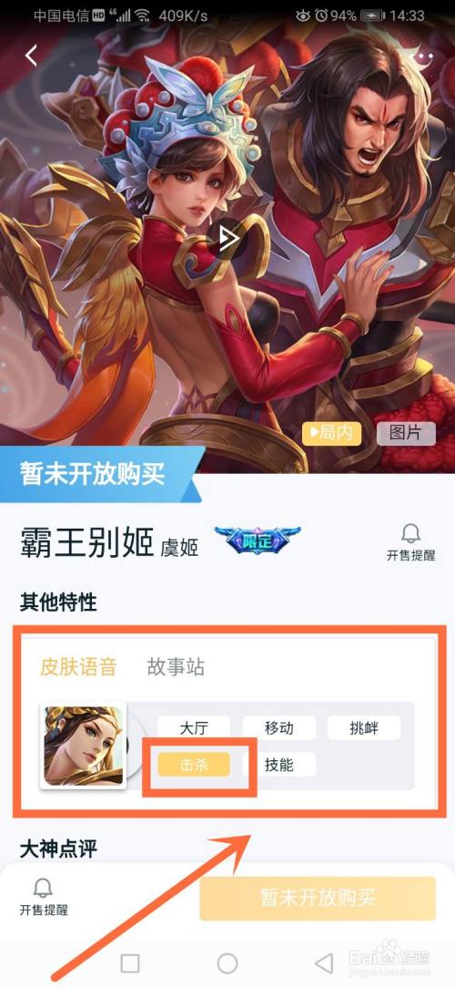 进入详情后,点击【想要听的霸王别姬皮肤语音】即可。这样我们就知道王者荣耀霸王别姬语音怎么听了。如下图所示