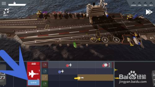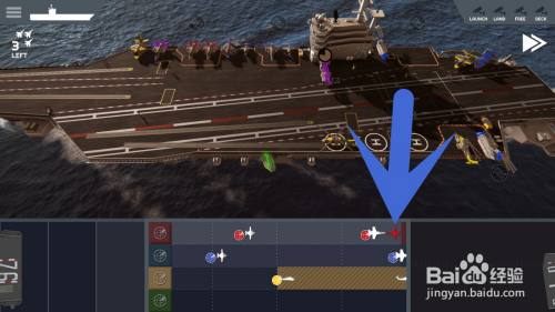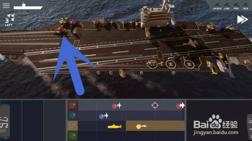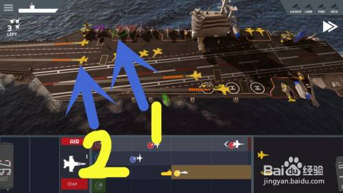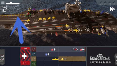 此刻,在航母上找出已安装空空导弹的战斗机,然后点击它,再点击起飞跑道上的黄色飞机图案,让该飞机滑行曩昔。