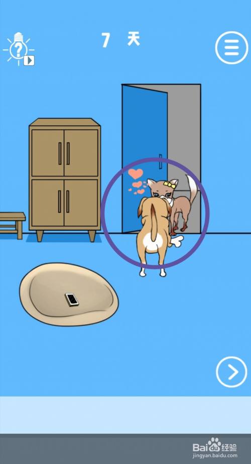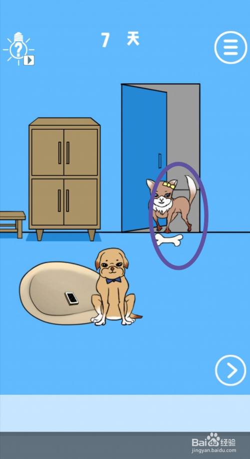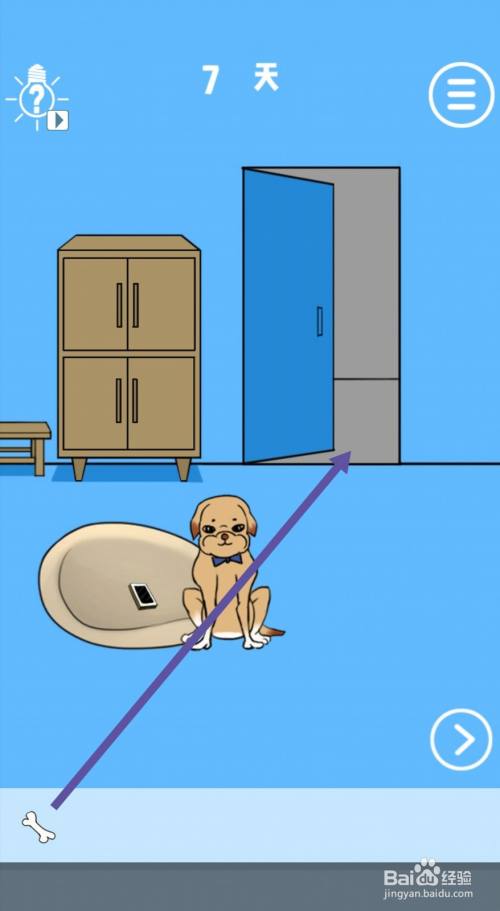 工具/原料品牌型号:华为nova7系统版本:android 10.0软件版本:谁把我的手机藏起来了1.3其他:无方式/步骤1打开冰箱,可以拿到【骨头】。2打开房间门,将【骨头】放到门外。3骨头就会吸引过来一只标致的小狗。4看管手机的狗狗被吸引,就会跟着标致小狗分开。5最后,点击拿到【手机】,游戏就过关了。END注重事项1.该条目游戏今朝仍处于测试阶段,在正式上线后可能会略有调整。2.适度游戏益脑,陷溺游戏伤身。合理放置时候,享受健康糊口。