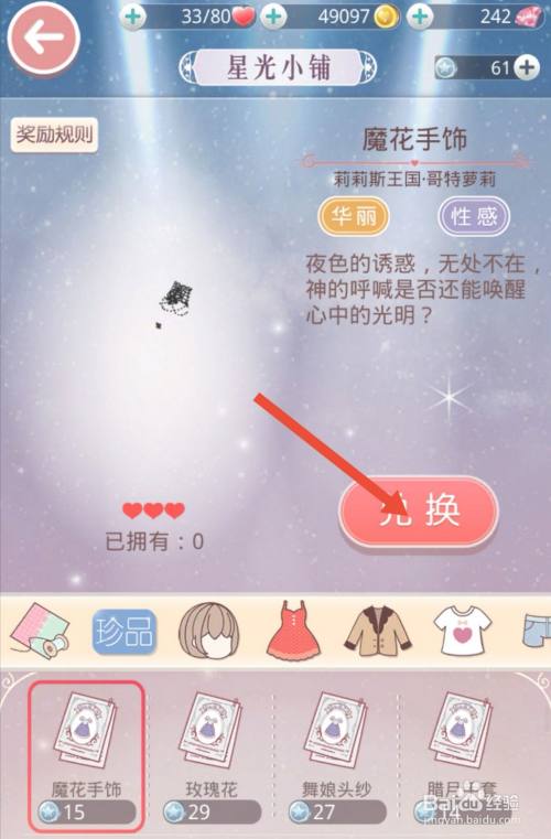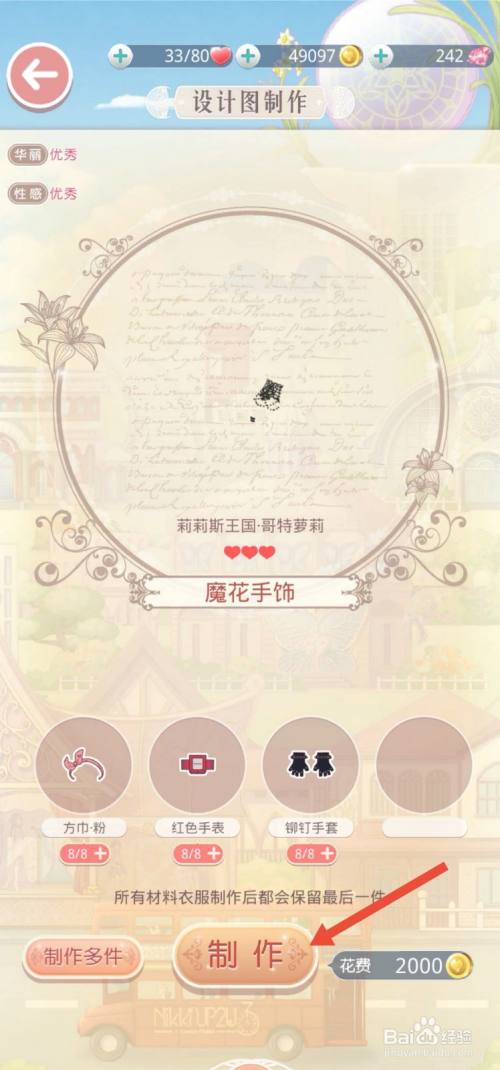 工具/原料华为Android10古迹暖暖方式/步骤1点击设计工坊。2点击设计图建造。3点击装饰品一栏,找到魔花手饰。4临时没有魔花手饰的设计图纸,需要到星光小铺利用15星光币进行兑换。5回到设计图建造界面,点击建造魔花手饰。6获得魔花手饰。END