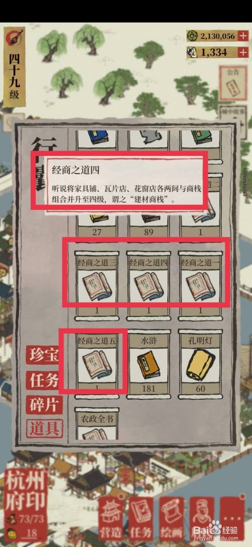我们在行囊中可以查看经商之道,五个经商之道别离对应五个商栈进级。