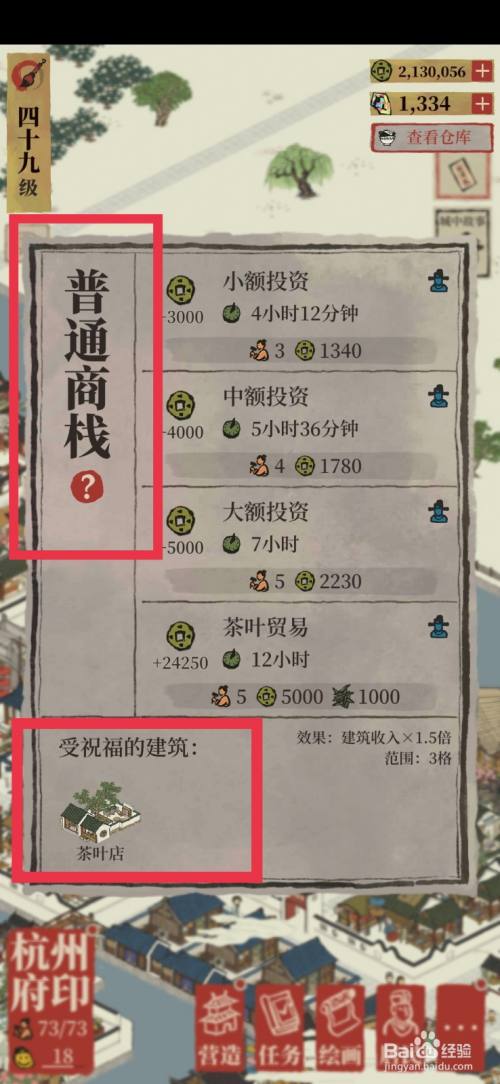 我们按照经商之道上,将指定建筑两两组合,而且升到四级,摆放到通俗商栈四周。