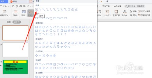 PPT幻灯片中建造折线型目次,首先点击外形的小箭头。
