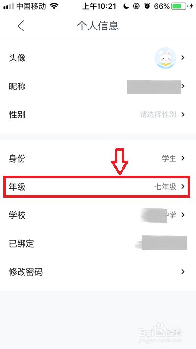然后我们点击本身头像右侧的年级