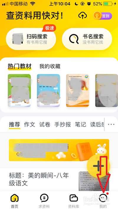 我们打开快对功课后,点击右下角的【我的】