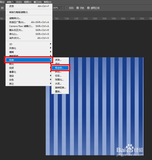 执行【滤镜】->【扭曲】->【极坐标】。