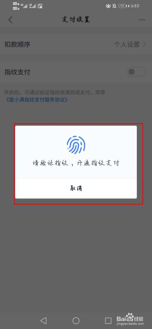 验证当作功,指纹支付将会主动开启