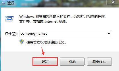 接着,输入号令“compmgmt.msc”后点击下方“确定”按钮;