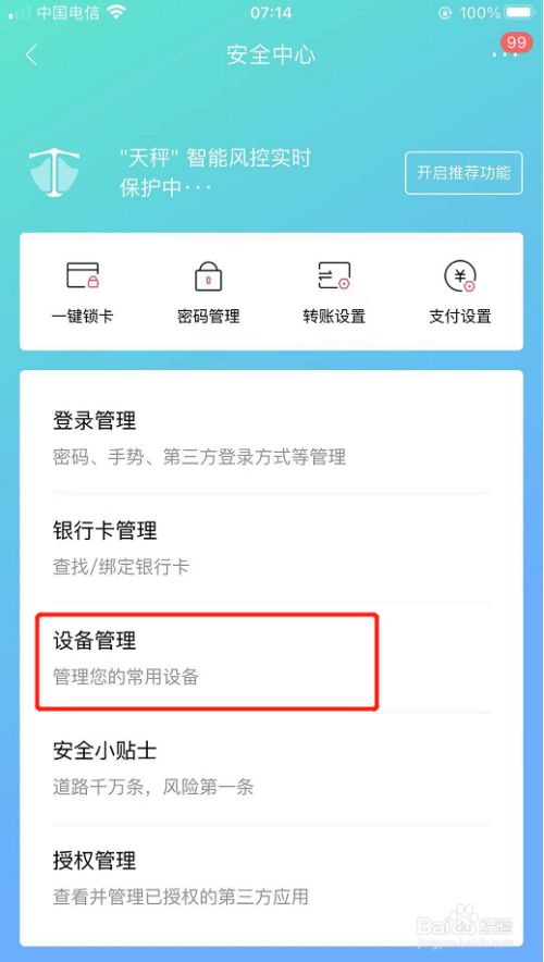 进入平安中间页面,点击【设备办理】进入,如下图;