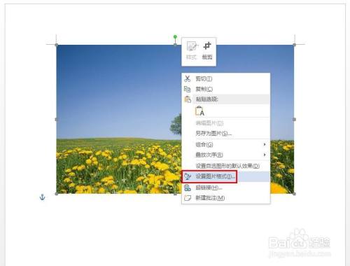 第四步:在图片中,单击鼠标右键,选择“设置图片格局”。