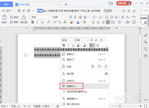 鼠标右击,点击文字,呈现选项,点击“段落”。