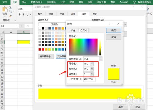- 查看单位格填充色的RGB值。