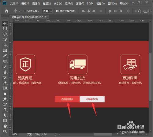 我们别离在矩形上面输入文字,左边是返回顶部,右边是保藏本店,如图所示。