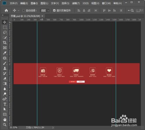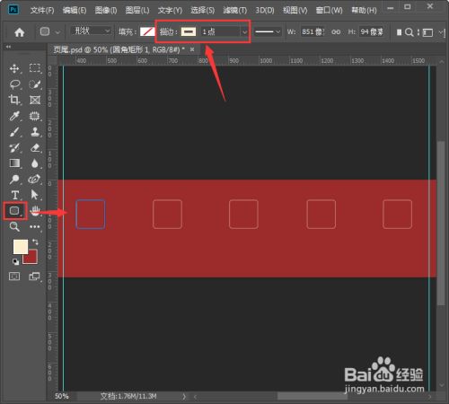 我们给布景填充为红色【#9c2b2c】。用【圆角矩形东西】先画出一个圆角外形,描边颜色设置为米黄色【#fcefcd】大小为1像素,然后我们按住【ALT】键标的目的右边再复制出4个圆角外形,如图所示。
