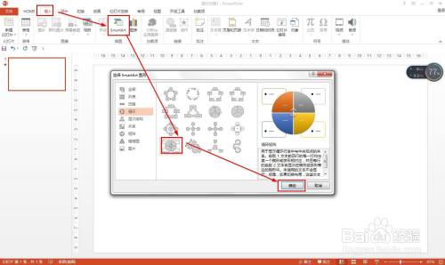 新建一个空白PPT——点击插入——SmartArt——选择轮回矩阵——点击确定。