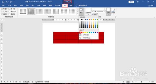 进入到“表格东西-设设计”,点击底纹下拉菜单中的颜色,就可以给表格填充底色。
