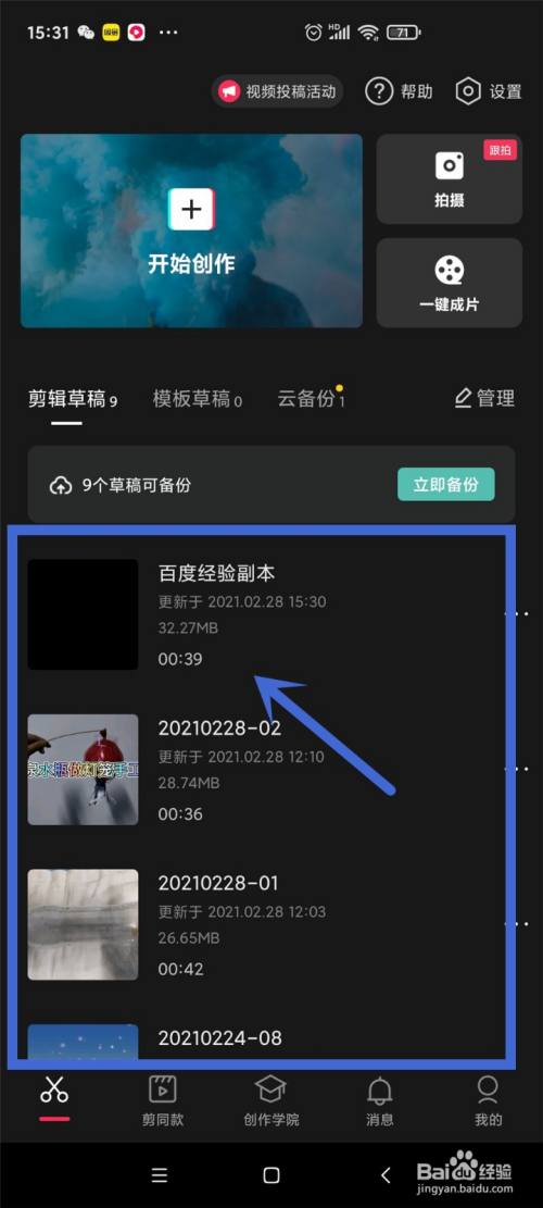 进入“剪映”编纂区。