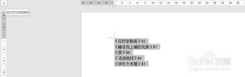 然后,将鼠标光标放置 在数字前面,即需要右对齐的文字区域的前面,点击键盘上的TAB键,则数字实现了右对齐,如图所示