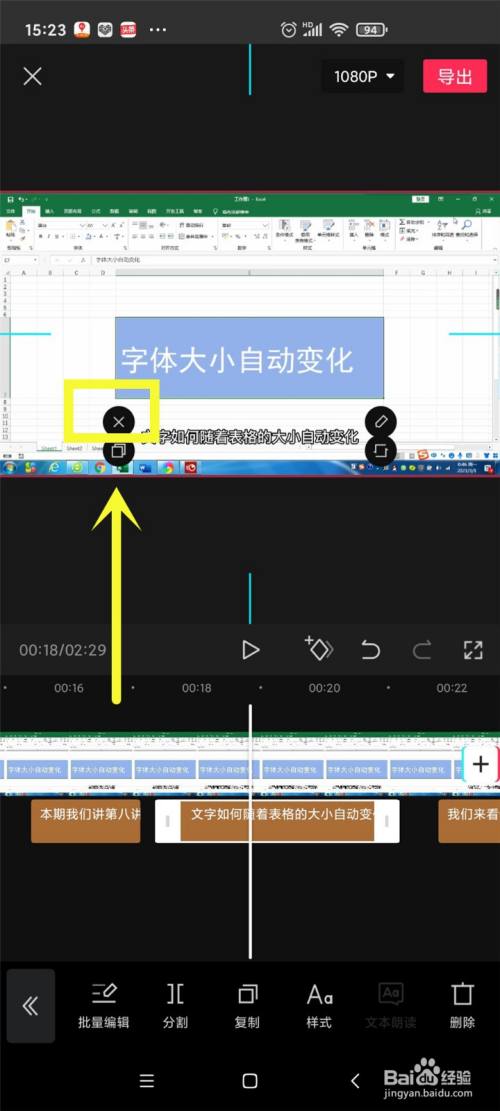 滑动视频到要删除字幕的位置。