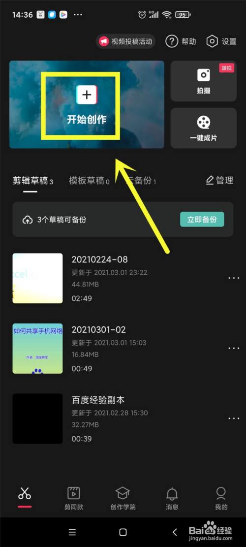 点击“起头创作”按钮。
