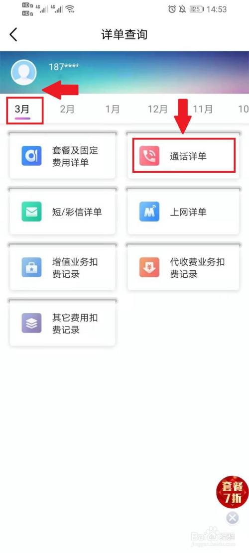 选择查询的月份,然后点击【通话详单】。