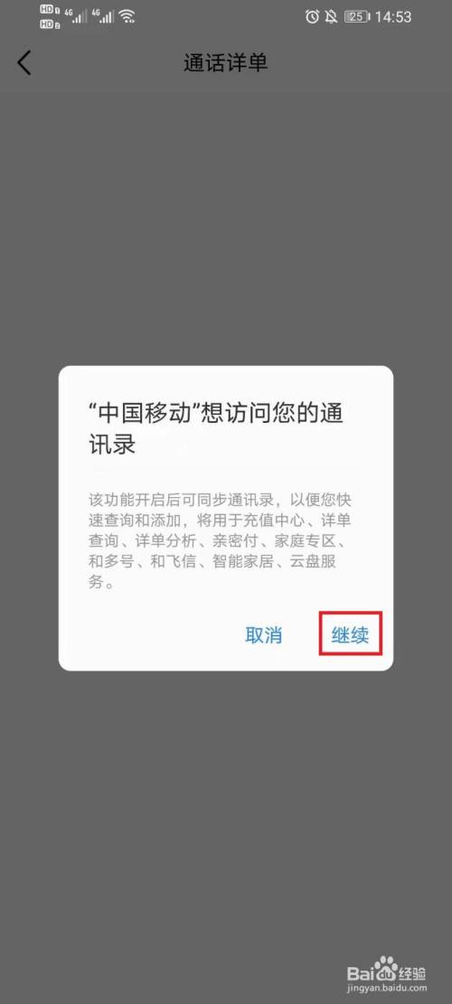 点击【继续】,打开通话详单。