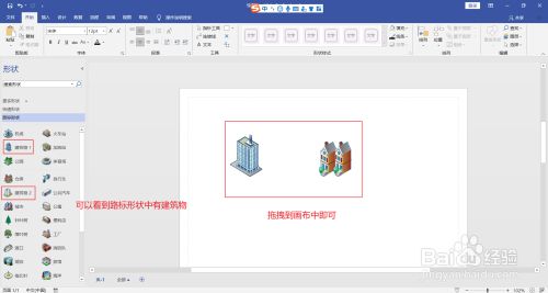 6.可以看到路标外形中有建筑物, 拖拽到画布中即可
