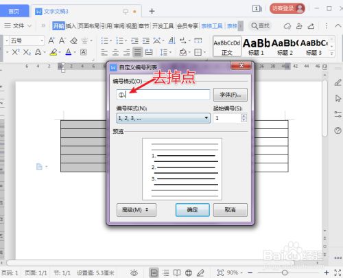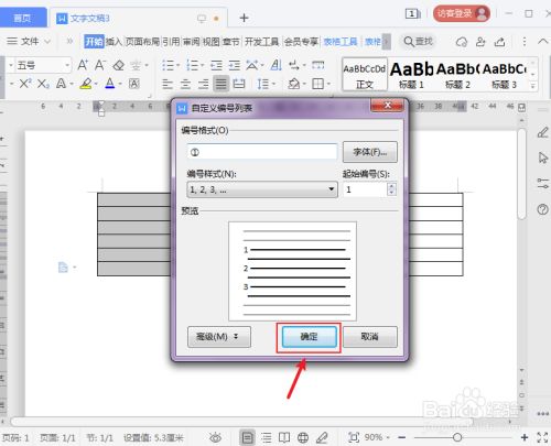 在自界说编号页面,点击一个编号类型,再点击“自界说”。