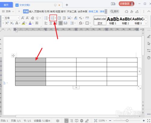 电脑打开文档,选中表格的单位格,在起头界面,点击编号的倒三角图标。