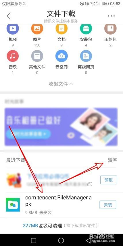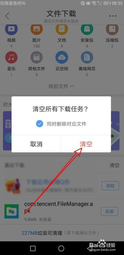 这时可以看到所有下载文件列表,点击右上角的清空按钮。