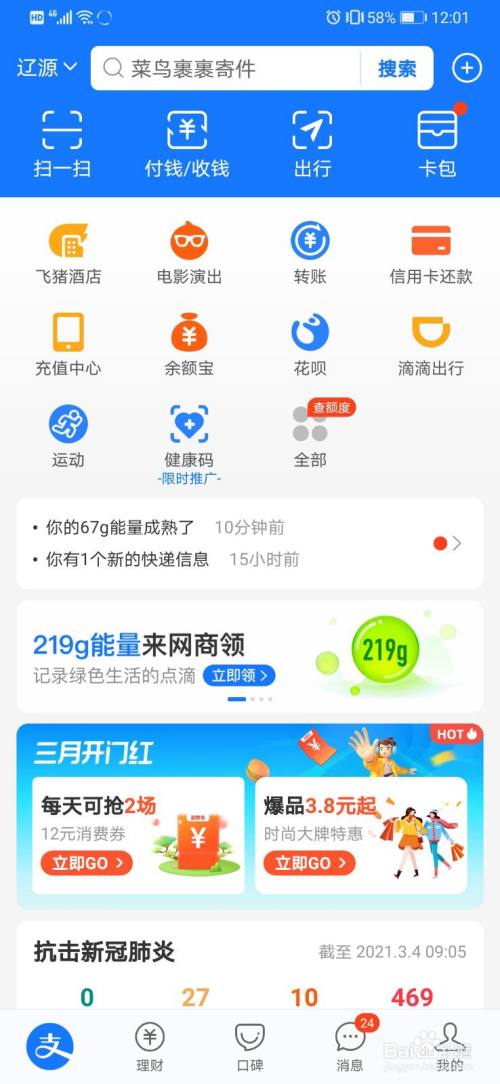 在支付宝的本家儿界面,点击一下上方的搜刮对话框。
