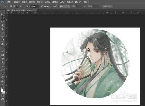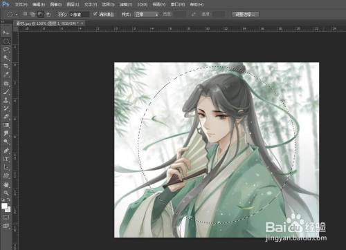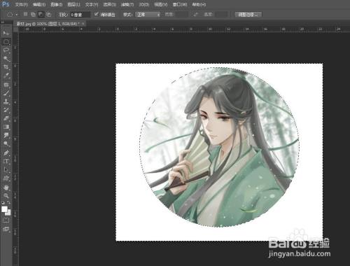 第四步:选择左侧东西栏中的“椭圆选框东西”,按住shift键,在图片中建立一个圆形选区。