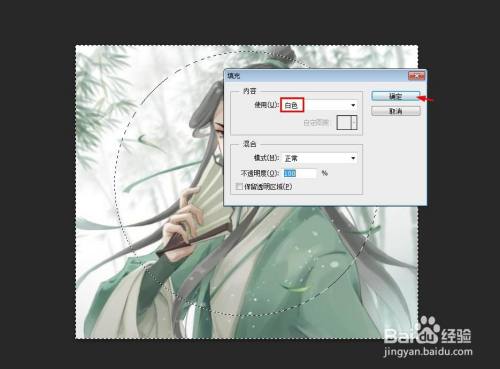 第七步:在弹出的“填充”对话框中,填充内容选择白色。