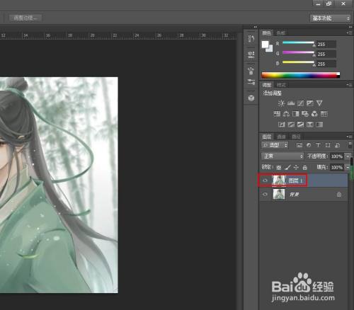 第三步:在图层操作面板处,按Ctrl+J键复制布景图层。