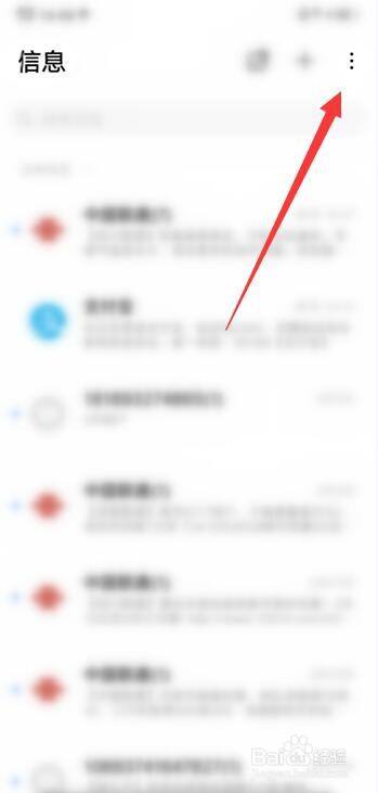 在短信界面点击右上角的三点符号。