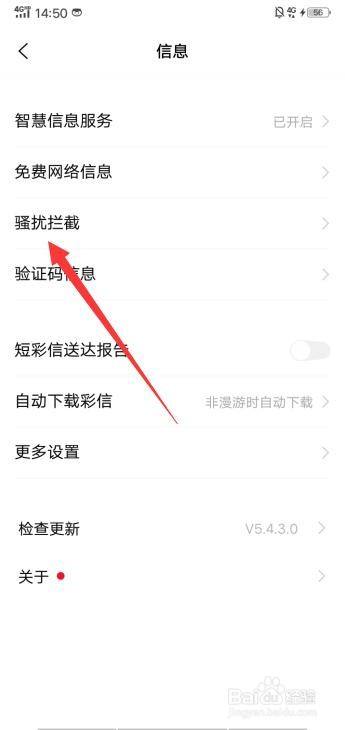 在短信设置中选择【骚扰阻挡】。