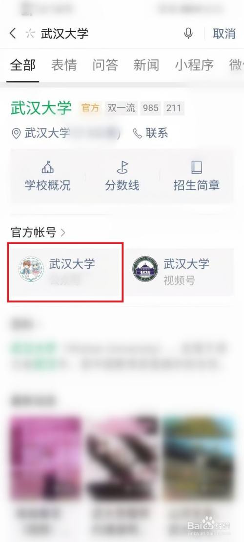 搜刮“武汉大学”,然后打开武汉大学官方微信。