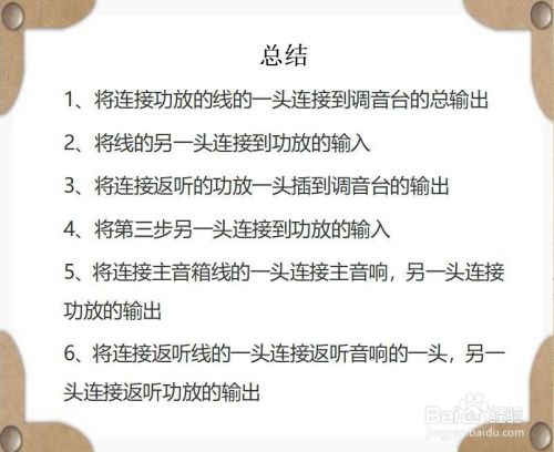 6、将毗连返听线的一头毗连返听音响的一头,另一头毗连返听功放的输出