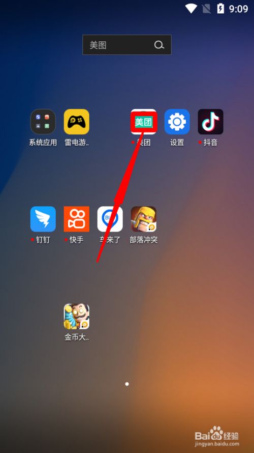 - 1打开手机进入后,点击美团。若是无法找到,请翻页或者上下滑动查找。