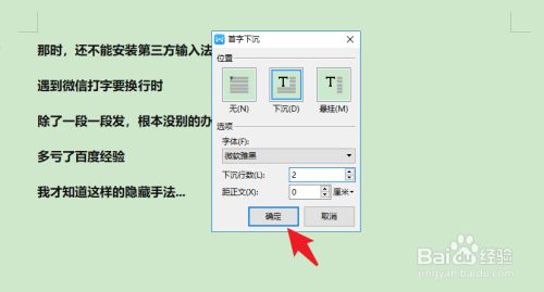 再打开菜单栏里的【首字下沉】小窗口。