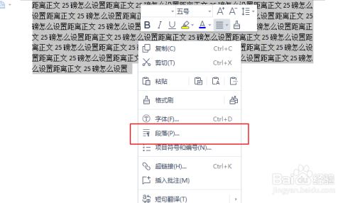 鼠标右键单击段落,弹出右键菜单,点击【段落】选项。