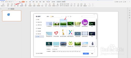 首先打开PPT,点击导航栏上的“插入-泪滴形”
