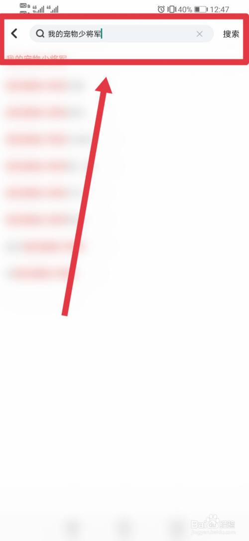 进入之后,我们在搜索框内输入我的宠物少将军,再点击搜刮菜单。